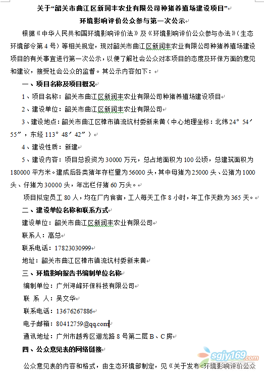 正文摘要:關(guān)于“韶關(guān)市曲江區(qū)新潤(rùn)豐農(nóng)業(yè)有限公司種豬養(yǎng)殖場(chǎng)建設(shè)項(xiàng)目”環(huán)境影響評(píng)價(jià)公眾參與第一次公示 |